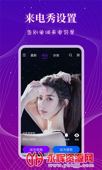 这里提供丰富多样的来电背景,让每一次接听变得炫目起来,不知不觉爱上来电的感觉