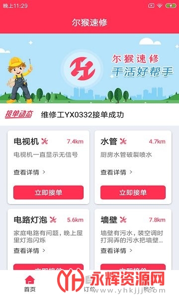 尔猴速修app是一款十分省心的便民生活服务软件,使用这款软件可以预约师傅上门维修家电、厨具、灯具等一系列问题,有需要的朋友们可以来永辉资源网下载使用哦!