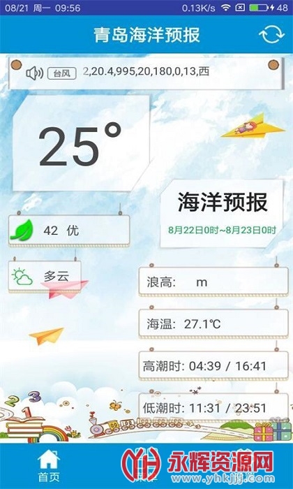 青岛海洋预报app全新为广大得用户提供的青岛本地打造海洋气象预报应用服务平台,这款软件能够帮助用户播报风速检测防灾提醒一系列强大功能,感兴趣的朋友赶快前来下载体验吧!