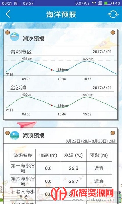 在夏天旅游高峰期,还为您提供青岛周边海水浴场的预报信息。