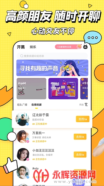yy手游语音最新版本是一款非常不错的手机游戏语音助手工具软件,软件凭借了强大的互联网技术为用户构建了一个功能全面的线上游戏语音助手,帮助用户在平常跟朋友开黑的时候能够即时交流,畅爽游戏,有兴趣的朋友就快来永辉下载体验吧!
