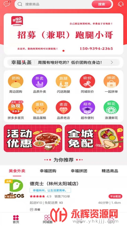 幸福林州是由河南金狗网络科技服务有限责任公司开发运营的林州市本地生活服务电子商务平台,我们为您提供外卖、团购、跑腿、社区拼团、砍价、城市圈、招聘求职、房屋租赁、上门服务等服务,真正实现一个可以满足林州市本地生活的多元化需求的APP!
