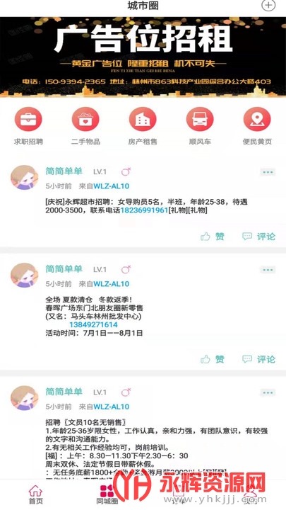 房屋租售、招聘求职、二手物品、顺风车、本地黄页,应有尽有!