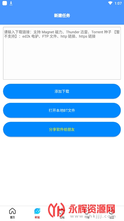 新建任务:支持磁力链接、迅雷链接、种子文件