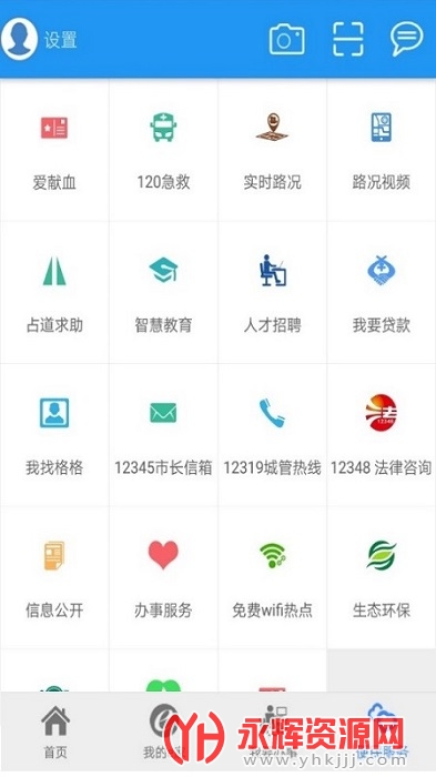含有市民卡、掌上医院、居民健康档案、职称查询、车辆环保标示、实时路况、网上立案、水利服务共8项功能
