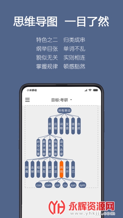 将考试常用的词根词缀,整理成为思维导图,让单词变得井井有条。
