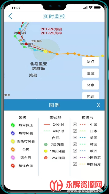 3、选择打开图例查看台风标准,观察地图上对应显示的标准