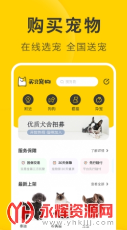 买只宠物app是一款十分优质的宠物交易服务平台,软件中有着好多品种的宠物,你可以在软件中放心选购,都是由平台担保的,有需要的朋友们快来永辉资源网下载吧!
