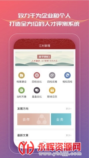 江村数理这是一款全新帮助用户人才测评服务平台软件,这款软件能够更好的去帮助喜欢星盘研究的朋友精心提供的,这里有着详细的星案和天象解析,而且还有海量的文章和学习排盘相关知识,有需求的朋友赶快前来下载体验!