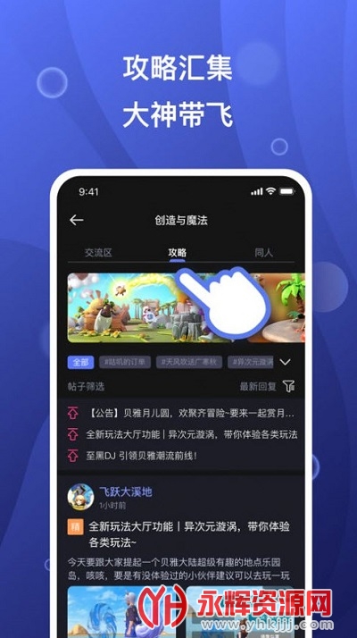 在这里可以浏览进阶攻略,还可以用图片分享日常游戏,轻松交友