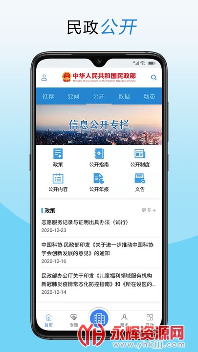 民政部app是由中华人民共和国民政部推出的官方软件,是一款线上新闻发布,服务群众的平台,软件内提供各大政务便民服务的办理,婚姻登记,社会救助等等,让群众能够即时的了解到相关的政策信息,提供便捷的服务功能,欢迎有需要的朋友来下载使用!