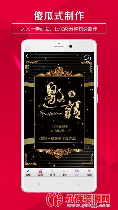 制作婚礼请帖、生日邀请函、满月喜帖、宝宝请柬、祝寿祝贺贺卡等百种合你心意电子请柬工具,通过一键分享请柬的方式发送给好友,把美好的结婚邀请函、生日邀请函作为电子相册、微喜帖、电子请帖,秀出准新人的婚纱照小恩爱!