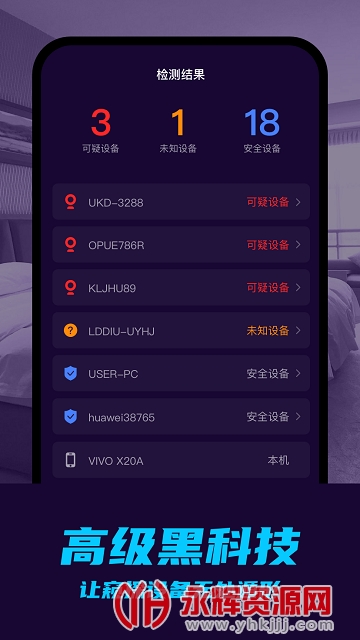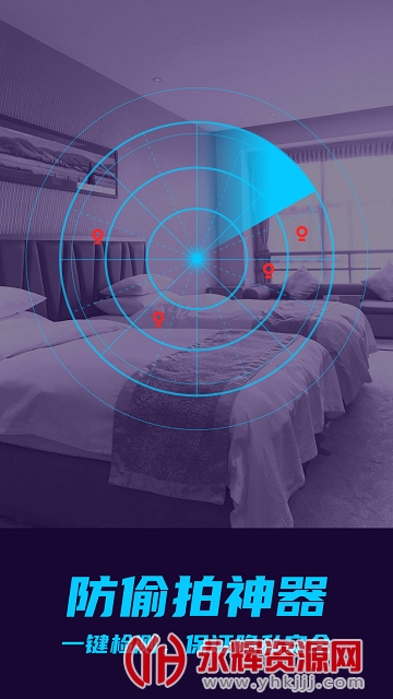 摄像头偷拍检测是一款非常好用的手机隐私守护工具软件,软件能够帮助用户搜索自己身边一定范围内的摄像头,避免出现在类似于出差过程中住酒店被人偷拍,让你的出行更加安全,有需要的朋友就快来永辉下载体验吧!