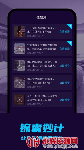 可帮助用户能随时随地进行检测,让你住店更加的安全
