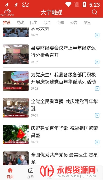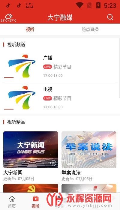 大宁融媒app是一款为大宁当地朋友们提供的便民生活服务软件,软件中可以让你了解到最新的本地热点资讯,对这款软件感兴趣的朋友们快来永辉资源网下载吧!