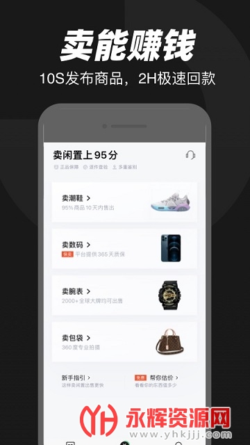上95分APP轻松卖闲置极速回血赚钱快,无需开店,仅需10秒即可自主上架宝贝,平台提供质检,鉴定,洗护,拍摄,仓储一站式服务,售出后2小时极速打款