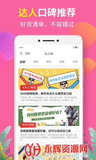 推出各种精选周期内的专题推荐,如尖端风格潮、美妆攻略、家居生活街等等;