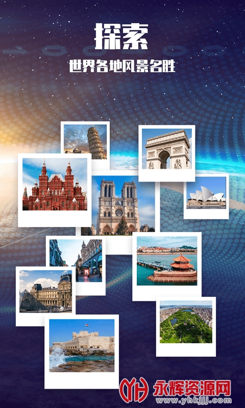 世界那么大,你想去看看吗,为用户呈现了全球各地著名景点的三维图形。