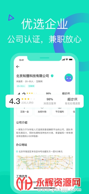 知狸招聘app是一款非常可靠的招聘找工作平台,软件中有着超多优质的兼职工作,你可以在软件中找到适合自己的各种,来赚取外快。有需要的朋友们快来永辉资源网下载吧!
