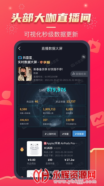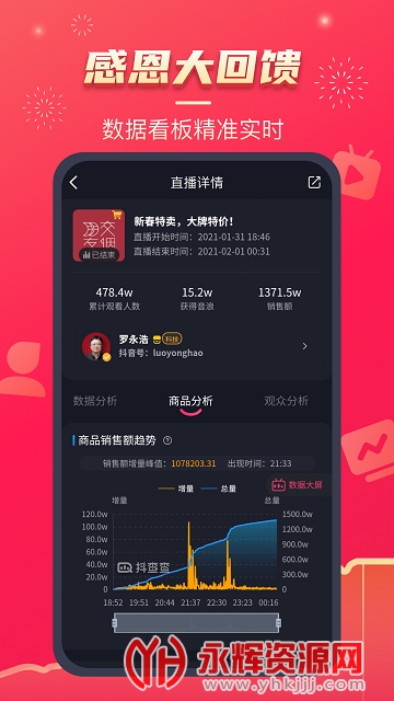 爆款直播间,直播流量大盘,实时直播数据大屏,多维度分析流量来源.