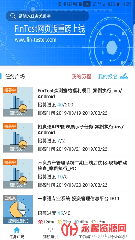 fintest众测全新为广大用户提供的真实的赚钱应用服务平台软件,能够更好的帮助平台去接任务,有着海量的赚钱任务都等着你来接单,而且还支持发布任务,有兴趣的朋友赶快前来永辉资源网下载体验吧!