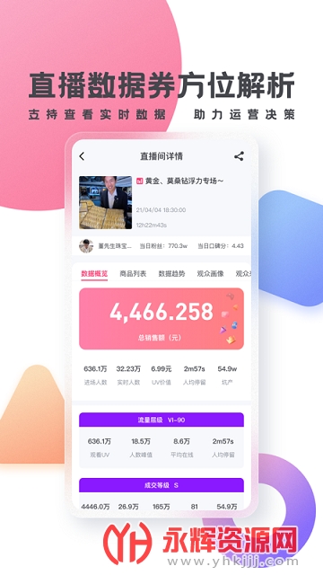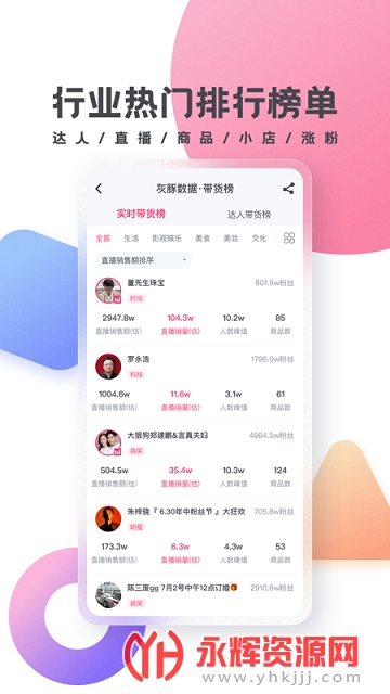 灰豚数据抖音版是一款非常不错的手机直播带货数据分析工具软件,软件凭借了强大的互联网大数据技术,能够帮助直播带货的主播即时分析各个产品的数据分析,从而对产品有个更好的定位,方便用户及时调整销售策略,非常的方便实用,有需要的朋友就快来永辉下载体验吧!