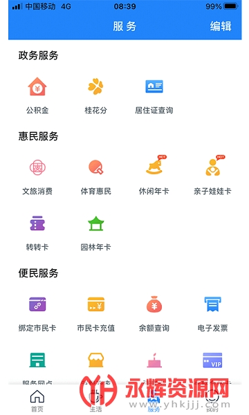 生活服务包括与市民卡相关的所有应用以及公交、地铁等实时信息;