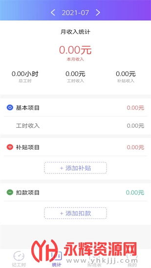 【记工时】简介明亮的界面设计,加班工资智能计算,补贴扣款自定义添加,加班备注提醒重要信息!