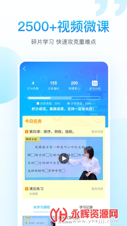 视频微课——课程超2500节,拥有丰富的语数英课程体系: