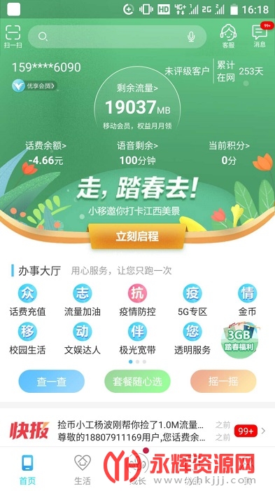 3、围观移动的最新动态消息,特惠的活动,办理线上新出的优惠套餐、携号转网、全球通业务、开通漫友城市、亲情号等等服务,及时了解最新的服务。