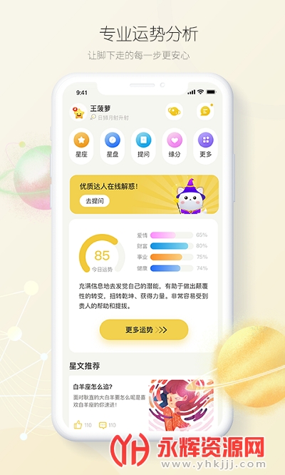 星座占起来app是一款十分优质的星座综合服务软件,在这款软件中你可以了解各个星座的性格以及近期运势,对这款软件感兴趣的朋友们快来永辉资源网下载吧!