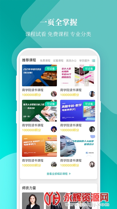 目前机构的课程覆盖了财务会计、平面设计、电子商务、室内设计、商务办公、机械设计、UI设计、学历助学等10多个热门领域及岗位的精品课程。
