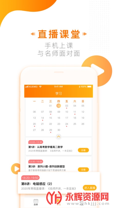 学为课堂app是一款好用的线上学习软件,这款软件主打直播教学,用户们可以通过软件在线进行学习,和名师面对面进行互动,有什么疑问可以实时提出来,老师会及时为你解答,帮助你轻松解决任何问题,让学习更加轻松。同时用户还可以自由的进行选课,可以选择自己喜欢的进行学习,让学习更加高效!欢迎有需要的朋友们前来永辉资源网下载!