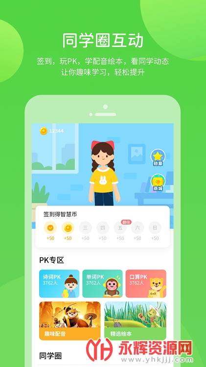 同学圈,去签到,玩PK,学配音绘本,看同学动态,让你趣味学习,快乐成长