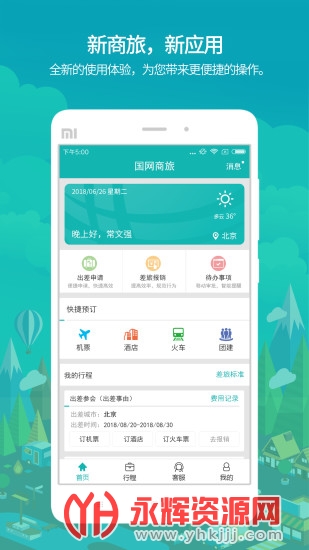 国网商旅云app是一款提供商旅出行服务的软件,用户可以在软件预订火车票,机票等等,目的地的酒店预订,商旅一站式服务,为用户提供可靠便捷的商旅服务,如果多人组团出行旅游,还可以私人订制服务,从景点选择到游玩回家,绝对让你舒心,欢迎有需要的朋友来下载使用!