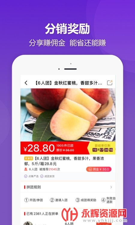 - 分享赚佣金:无需打款,无需压货!以团购价分享出售后便可获得利润,方便快捷!单款佣金高至100元!