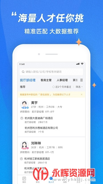 个人求职、系统消息提醒,随时关注求职动态