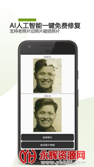 AI照片修复软件是一款免费的智能AI照片修复处理工具,使用人工智能技术,可以将模糊照片、低清照片、斑驳痕迹修复,并针对面部进行了高清还原修复。功能包括照片破损修复、黑白照片上色、无损放大、模糊照片清晰增强等实用工具。基于先进的AI图像生成技术,几秒内便可实现老旧照片破损修复、模糊照片清晰增强、低分辨率照片的画质增强。