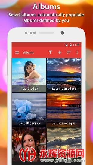 通过手工添加您的照片和视频创建自定专辑或者使用智能专辑,采用自动的简单匹配的媒体来填充专辑。