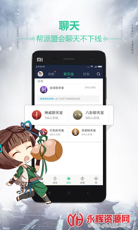1、用户提供游戏好友和帮派等群组织聊天,资讯、活动和维护提醒、帐号管理、扫码登录及天涯时刻、答题器、假日模式及补签等游戏特性功能,为端游用户提供永不离线的游戏体验。