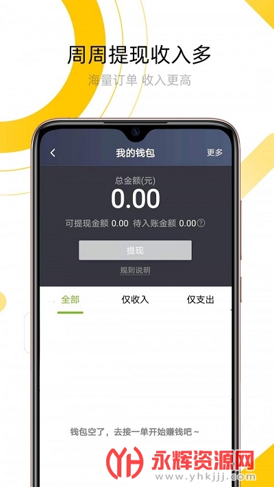 在这里,每一周都可以进行现金的提现,平台拥有海量的订单,让用户的收入可以更高。