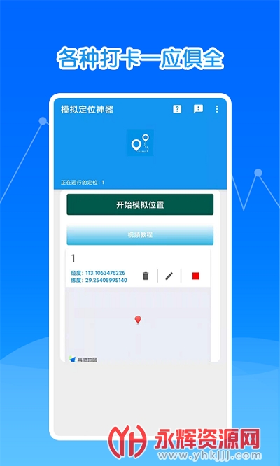 瑜兮模拟定位神器app是一款十分好用的手机虚拟定位软件,使用这款软件可以一键修改你的定位,有需要的朋友们可以来永辉资源网下载使用哦!