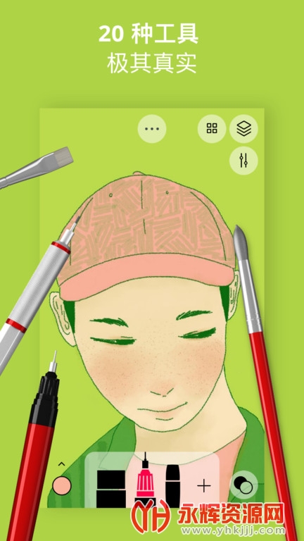行影勾绘app全新为广大用户带来的手机Tayasui Sketches专业画图服务平台,这款软件有着超二十多种写实工具,无限图层,笔刷编辑器,感兴趣的小伙们赶快前来下载体验一番吧!