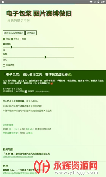 电子包浆制作生成器你是一个网龄够长的网民,那你看到上图应该就会明白「电子包浆生成器」究竟是什么东西,电子包浆生成器app,简单来说,它就是一个图片的做旧网站,通过添加多重的水印与被压制的模糊泛绿感来给图片起到发旧的视觉效果。