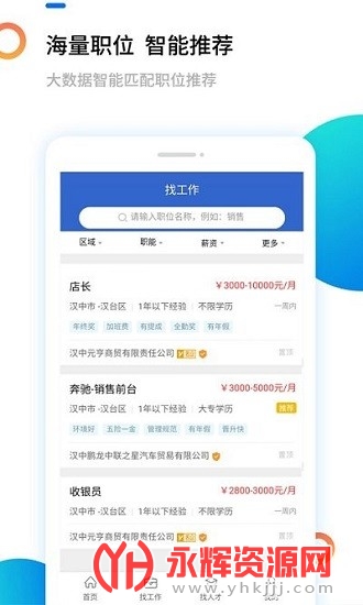 高薪热门职位智能推荐,精准,定位你的上班圈;