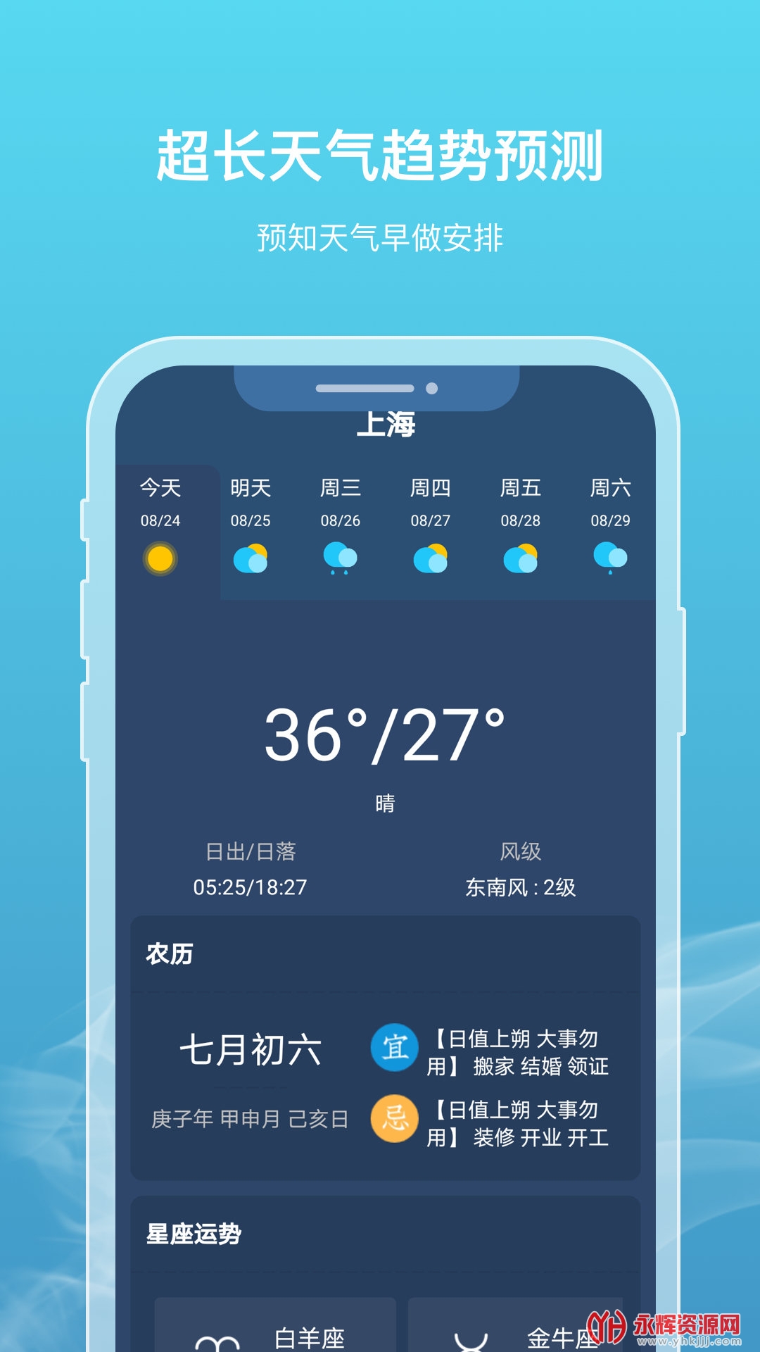 3、星座大师坐镇,每天为您指导迷津,12星座每日运势连 连看不停 *各项数据均由权威天气机构提供数据支撑,多渠道数据源整合,只为给您提供气象预报数据