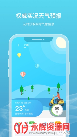 1、实时为用户监控当天的天气情况和空气质量,全面呵护用户的身体健康。