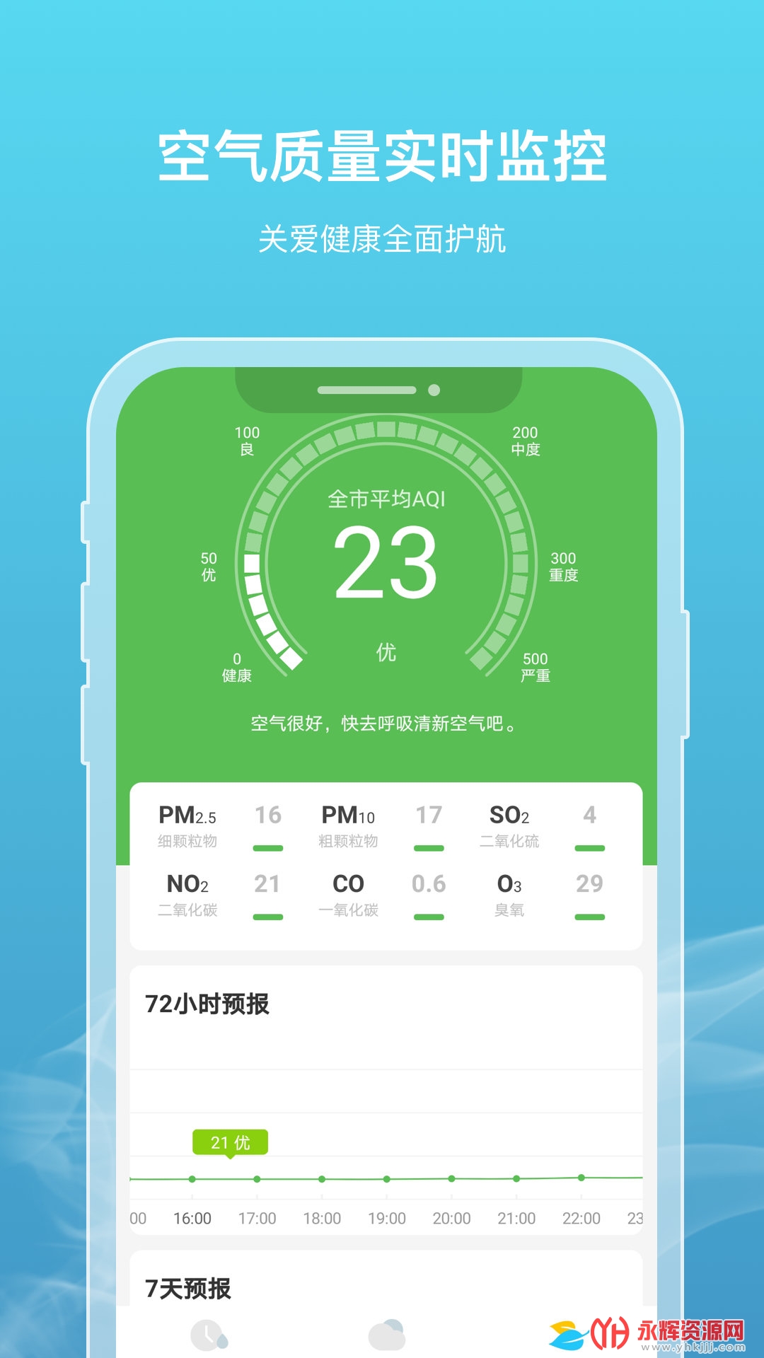 2、实时监控空气质量,关爱健康全面护航,数据来源于官方专业服务机构。