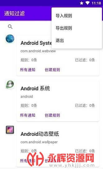 通知过滤app是使用Kotlin语言和Jetpack组件开发的通知管理程序。你可以自定义通知栏所想要看见的内容,辅助你完成对于通知上面的过滤,对于各种通知内容进行一个全面的过滤并且软件还支持规则的导出或者是导入。