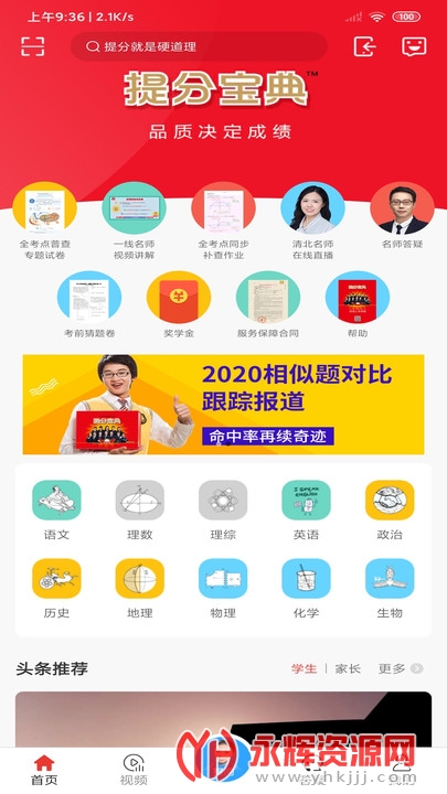 提分宝典,成绩提升第一步!随时随地,想学就学,源自国内众多一线名师倾情奉献,全线指导中高考备考难题。